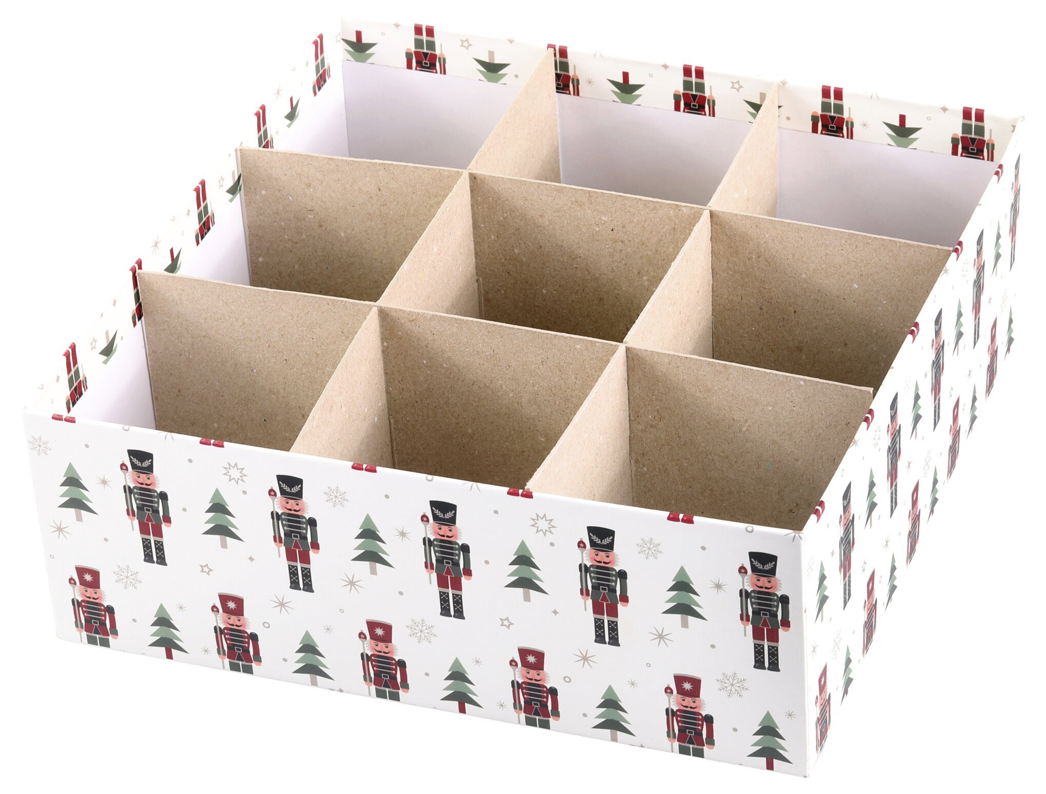Med insatsfack i boxarna blir det enkelt att hålla ordning på känsliga dekorationer och julgranskulor (insatsen går att plocka bort).