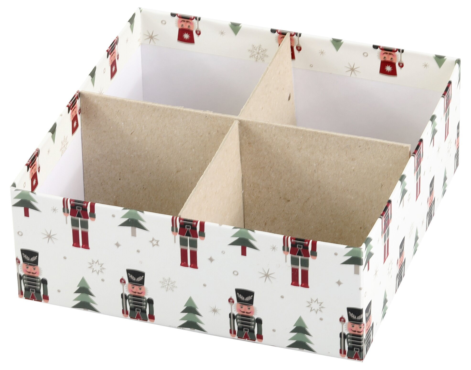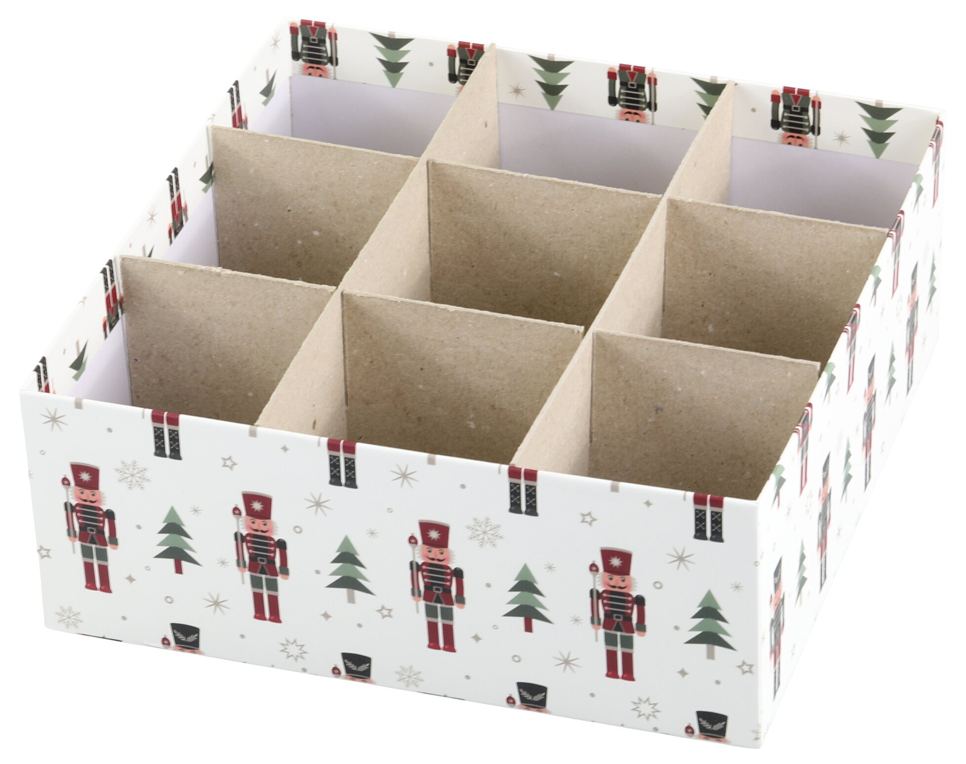 Praktiska och dekorativa boxar i tre olika storlekar, klädda i juligt mönster med nötknäppare, granar och snöflingor. Läs mer
