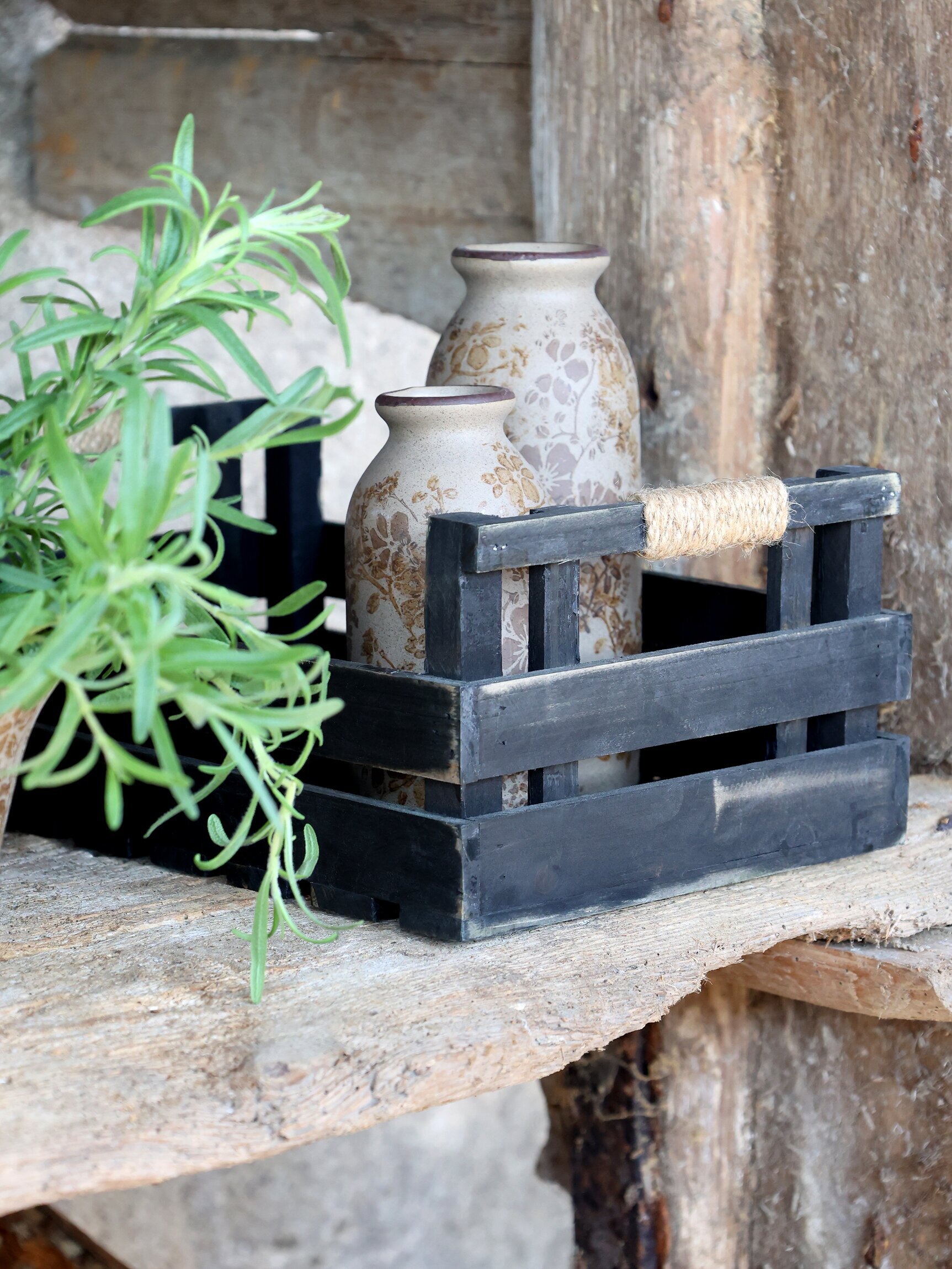 Små dekorativa trälådor i svart finish, med sina handtag klädda i rep blir de både praktiska och stilfulla. Använd dem för att samla kryddor i köket, ordna småsaker i vardagsrummet eller som en charmig detalj i inredningen.